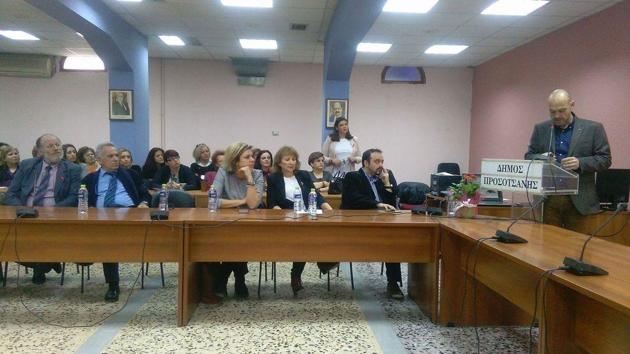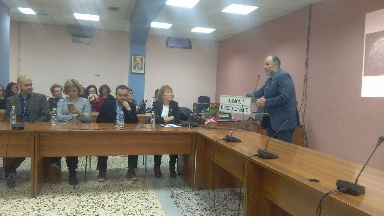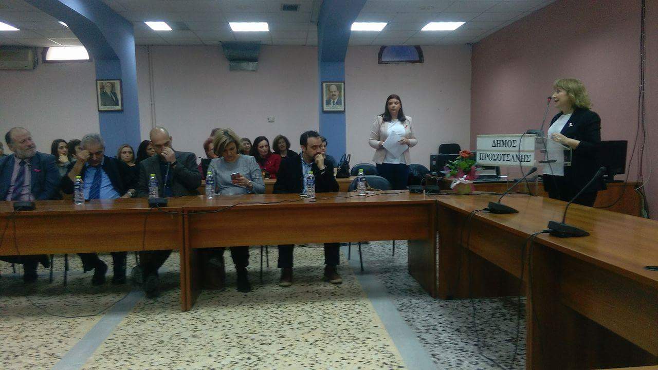 Στην ομιλία, που έλαβε χώρα την 11:00 π.μ., η Πρόεδρος της Δημοτικής Επιτροπής Ισότητας των Φύλων του Δήμου Προσοτσάνης, κυρία Ελένη Τσαούση αναφέρθηκε στην Παγκόσμια Ημέρα της Γυναίκας και καλωσόρισε τα μέλη του Δ.Σ. του Συλλόγου Γυναικών με Καρκίνου του Μαστού ΑΛΜΑ ΖΩΗΣ Ν.Θεσσαλονίκης, και ευχαρίστησε θερμά τον κύριο Άρη Τσιφτσόγλου και την επιστημονική ομάδα του για την παρουσία τους στην Προσοτσάνη, την εξέταση των γυναικών του Δήμου και την καθοριστική συμβολή τους στην επιτυχία της εκδήλωσης. Στη συνέχεια χαιρέτησαν την εκδήλωση ο Δήμαρχος Προσοτσάνης κύριος Άγγελος Λύσσελης και η Πρόεδρος του Συλλόγου Γυναικών με Καρκίνου του Μαστού ΑΛΜΑ ΖΩΗΣ Ν. Θεσσαλονίκης κυρία Κούλα Δερεκενάρη. Έπειτα ο κύριος Τσιφτσόγλου, ο κύριος Δεσίρης και η κυρία Μαλανδρή πήραν με αντίστοιχη σειρά το λόγο και αναφέρθηκαν στη σπουδαιότητα της πρόληψης και της έγκαιρης διάγνωσης όσο αφορά στην ίαση του Καρκίνου του Μαστού, μίλησαν για τους ανασταλτικούς παράγοντες της πρόληψης, για την αναγκαιότητα των εξετάσεων, τις εξεταστικές μεθόδους, τα συμπτώματα, τους τρόπους αντιμετώπισης και τους κινδύνους της ασθένειας. Ο λόγος τους ήταν σύντομος και περιεκτικός, και με την επιστημονική τους κατάρτιση και εμπειρία προέτρεψαν όλες τις γυναίκες να πραγματοποιούν προληπτικούς ελέγχους.