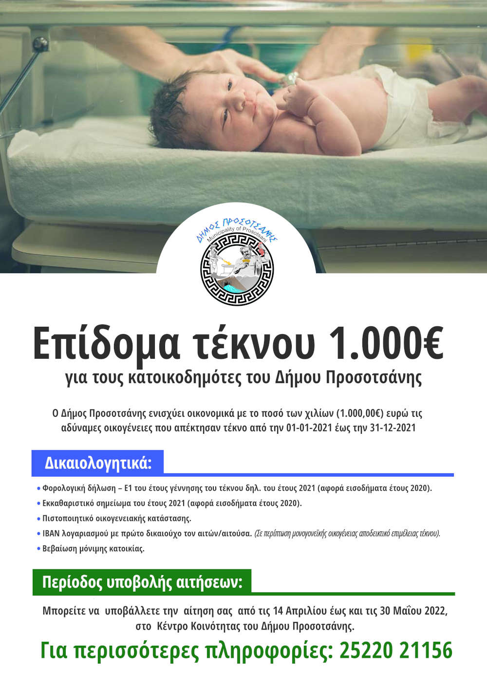Ανακοινώνεται ότι από την 10η Μαΐου έως και 31η Μαΐου 2022 οι γονείς και κηδεμόνες μπορούν να αποστείλουν αιτήσεις εγγραφής ή επανεγγραφής νηπίων στους Παιδικούς Σταθμούς και εγγραφής βρεφών στον Α΄Βρεφονηπιακό Σταθμό Προσοτσάνης του ΝΠΔΔ Δήμου Προσοτσάνης για το σχολικό έτος 2022-2023.