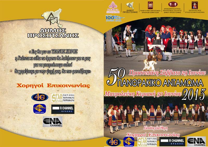 Επίσημη Έναρξη και Χαιρετισμοί Χορευτικές παραστάσεις όλων των συλλόγων Αναπαράσταση θρακιώτικου γάμου (χαράς ) από Θρακική Εστία Δράμας Παραδοσιακό γλέντι με ζωντανή μουσική με τη συμμετοχή του γνωστού Θρακιώτη καλλιτέχνη Βαγγέλη Δημούδη. |