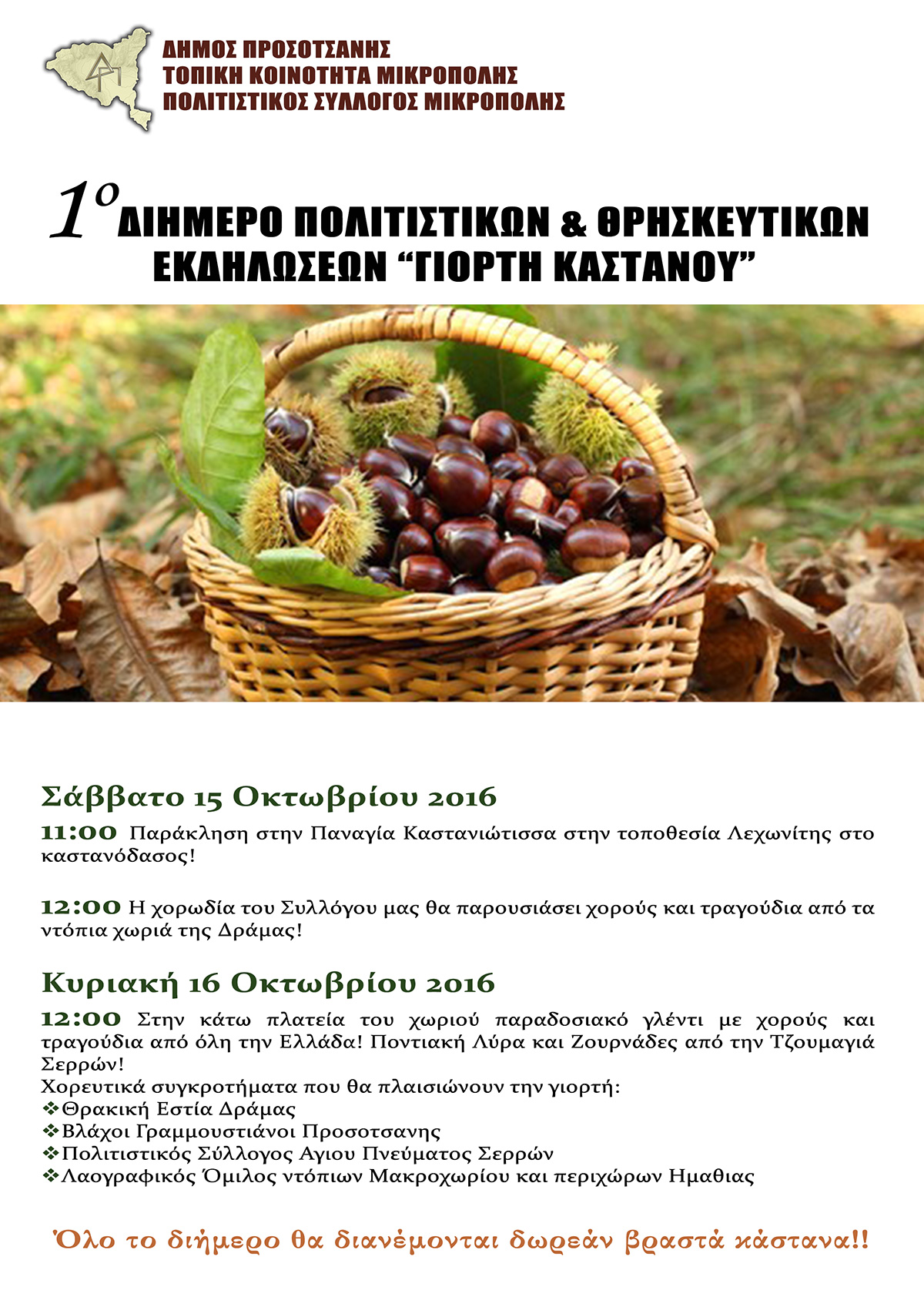 1ο Διήμερο Πολιτιστικών & Θρησκευτικών Εκδηλώσεων «Γιορτή Κάστανου»
