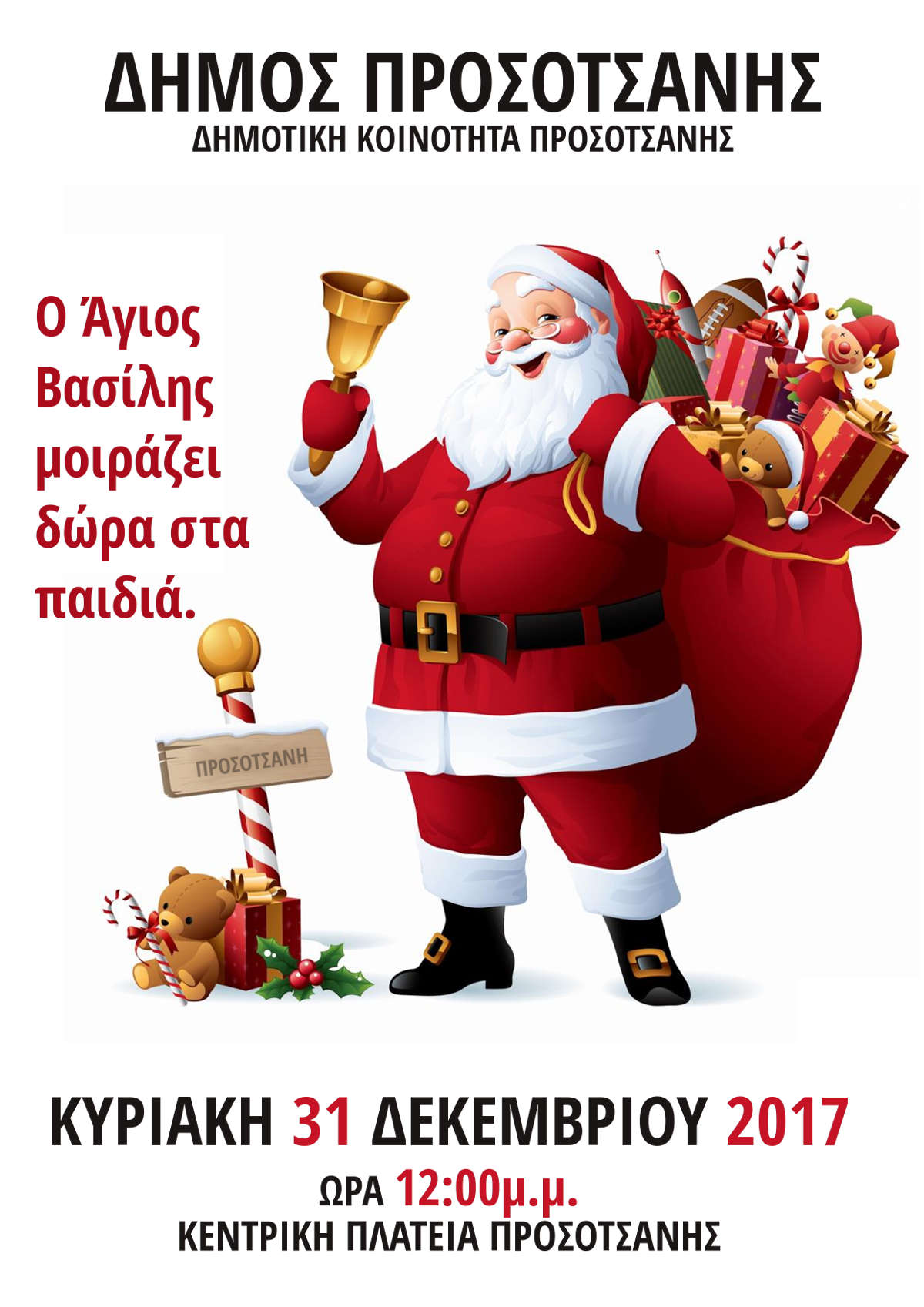 Ο Άγιος Βασίλης μοιράζει δώρα στα παιδιά - Κυριακή 31 Δεκεμβρίου 2017