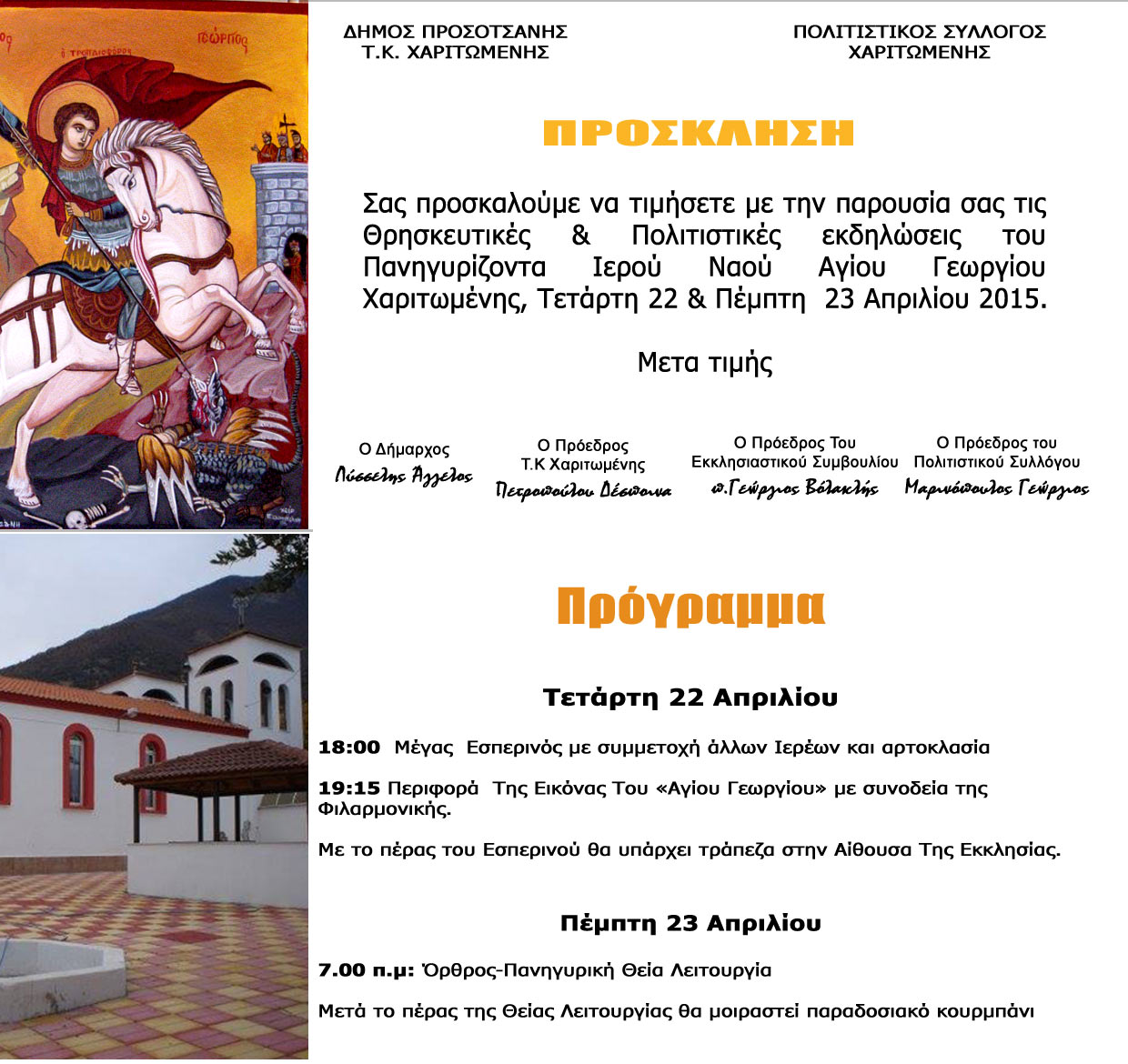 Διήμερες Θρησκευτικές Εκδηλώσεις Ιερού Ναού «Αγίου Γεωργίου»