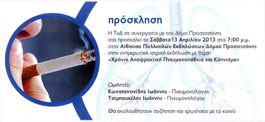 Ενημερωτική ιατρική εκδήλωση με θέμα: ''Χρόνια Αποφρακτική Πνευμονοπάθεια και Κάπνισμα''