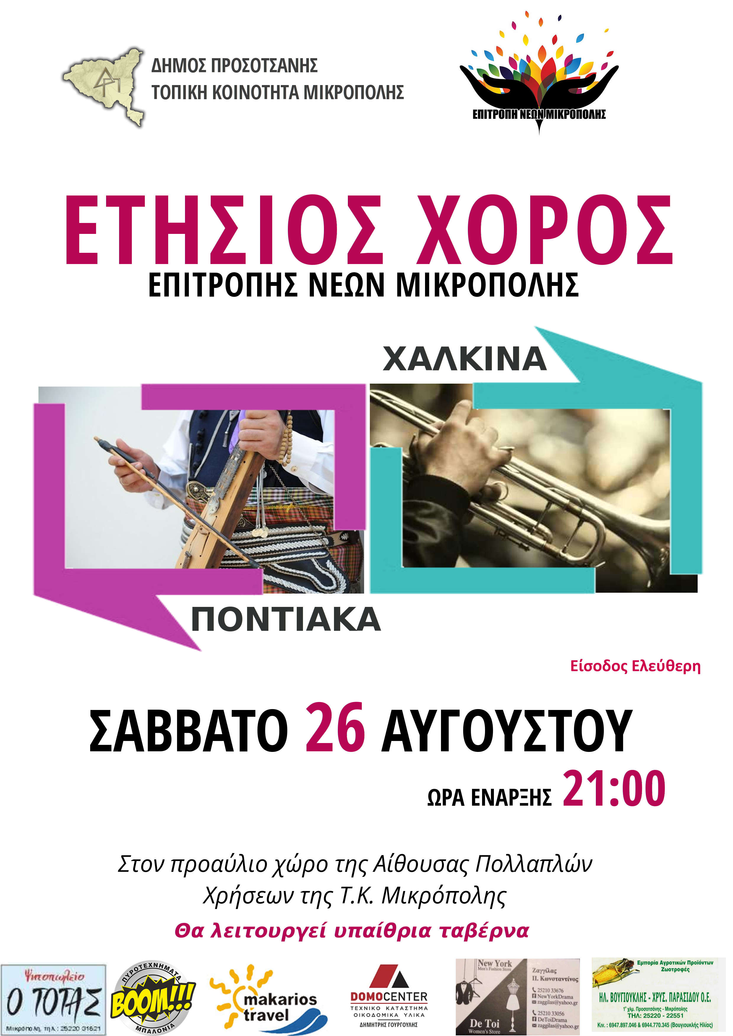 Ετήσιος χορός της Επιτροπής Νέων Μικρόπολης - Σάββατο 26 Αυγούστου 2017 και ώρα 21:00 - Τ.Κ. Μικρόπολης