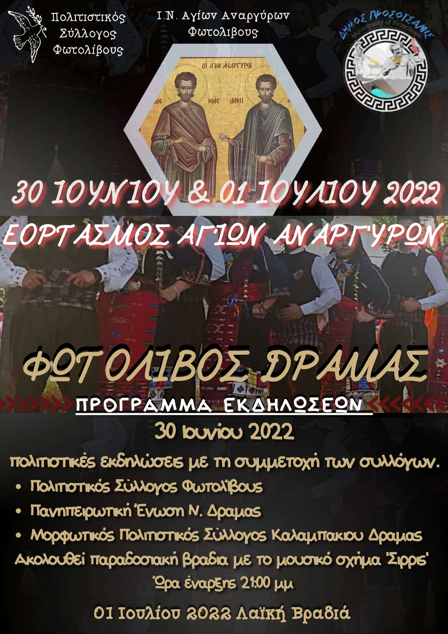 Πολιτιστικές εκδηλώσεις “Αγίων Αναργύρων” από 30 Ιουνίου έως 1 Ιουλίου στην Τ.Κ. Φωτολίβους 2022