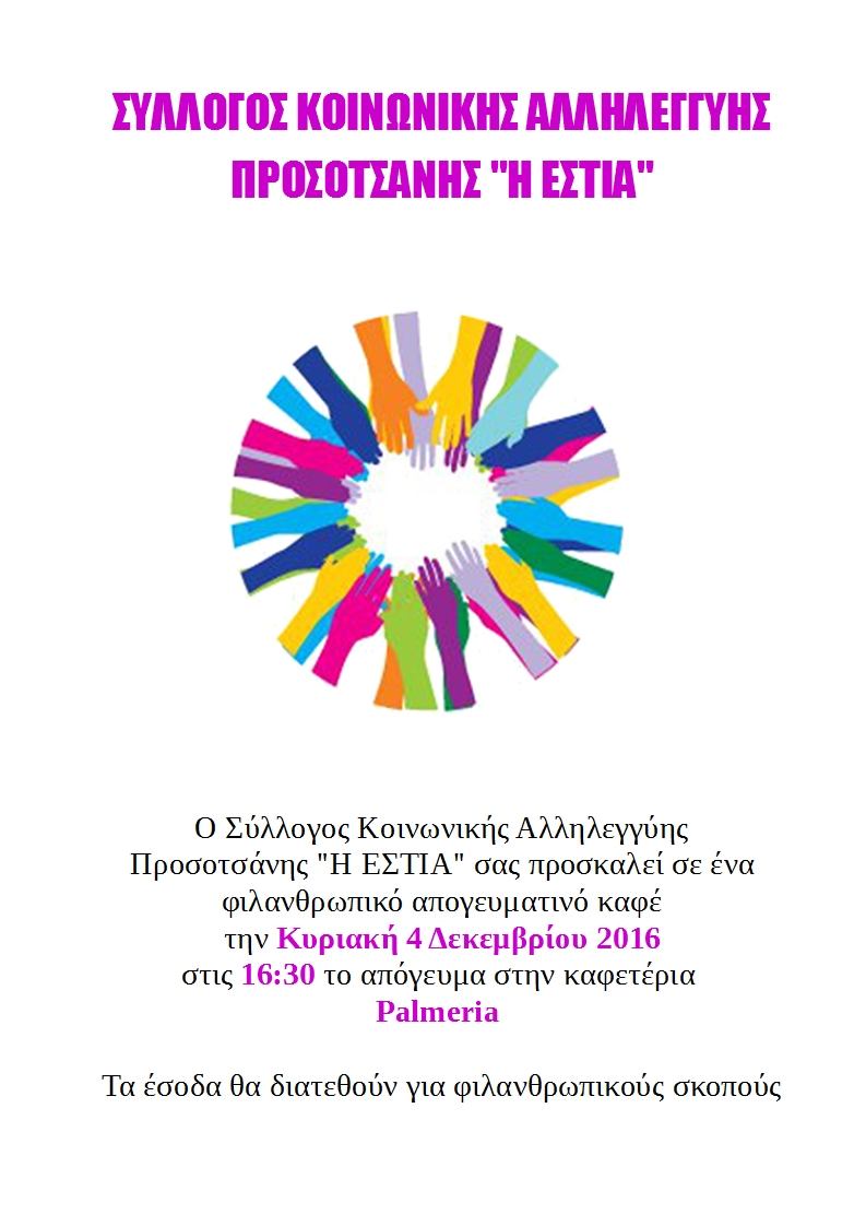 Φιλανθρωπικός απογευματινός καφές - Κυριακή 4 Δεκεμβρίου 2016