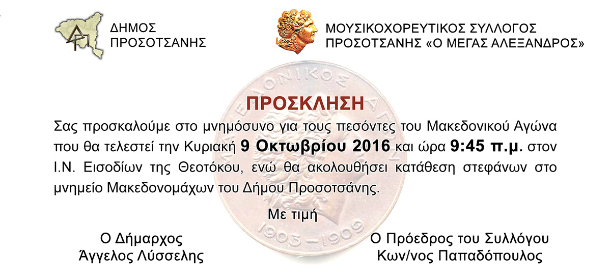 Μνημόσυνο για τους πεσόντες του Μακεδονικού Αγώνα - Κυριακή 9 Οκτωβρίου 2016