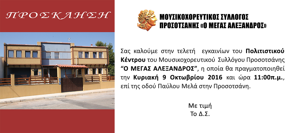 Εγκαίνια Πολιτιστικού Κέντρου του Μουσικοχορευτικού Συλλόγου Προσοτσάνης "Ο ΜΕΓΑΣ ΑΛΕΞΑΝΔΡΟΣ"