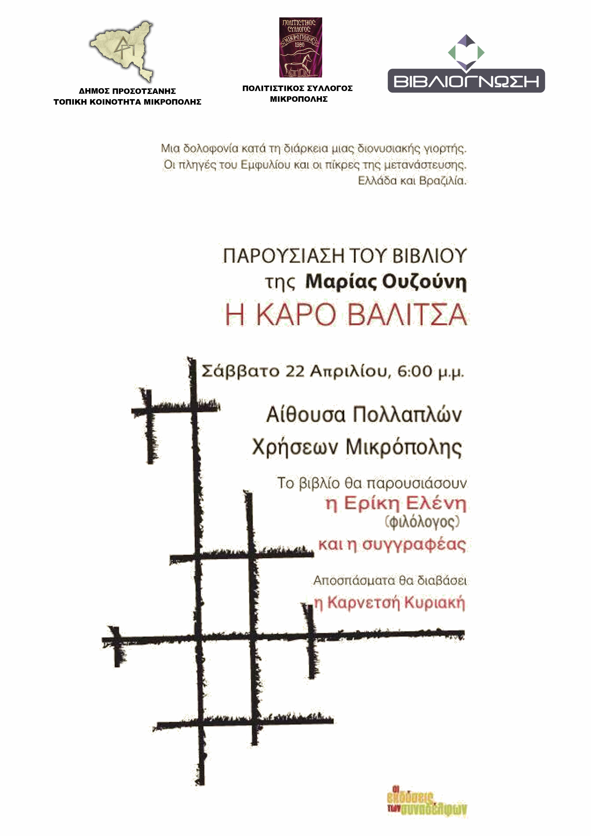 Παρουσίαση βιβλίου της Μαρίας Ουζούνη - Σάββατο 22 Απριλίου και ώρα 18:00 στην Μικρόπολη