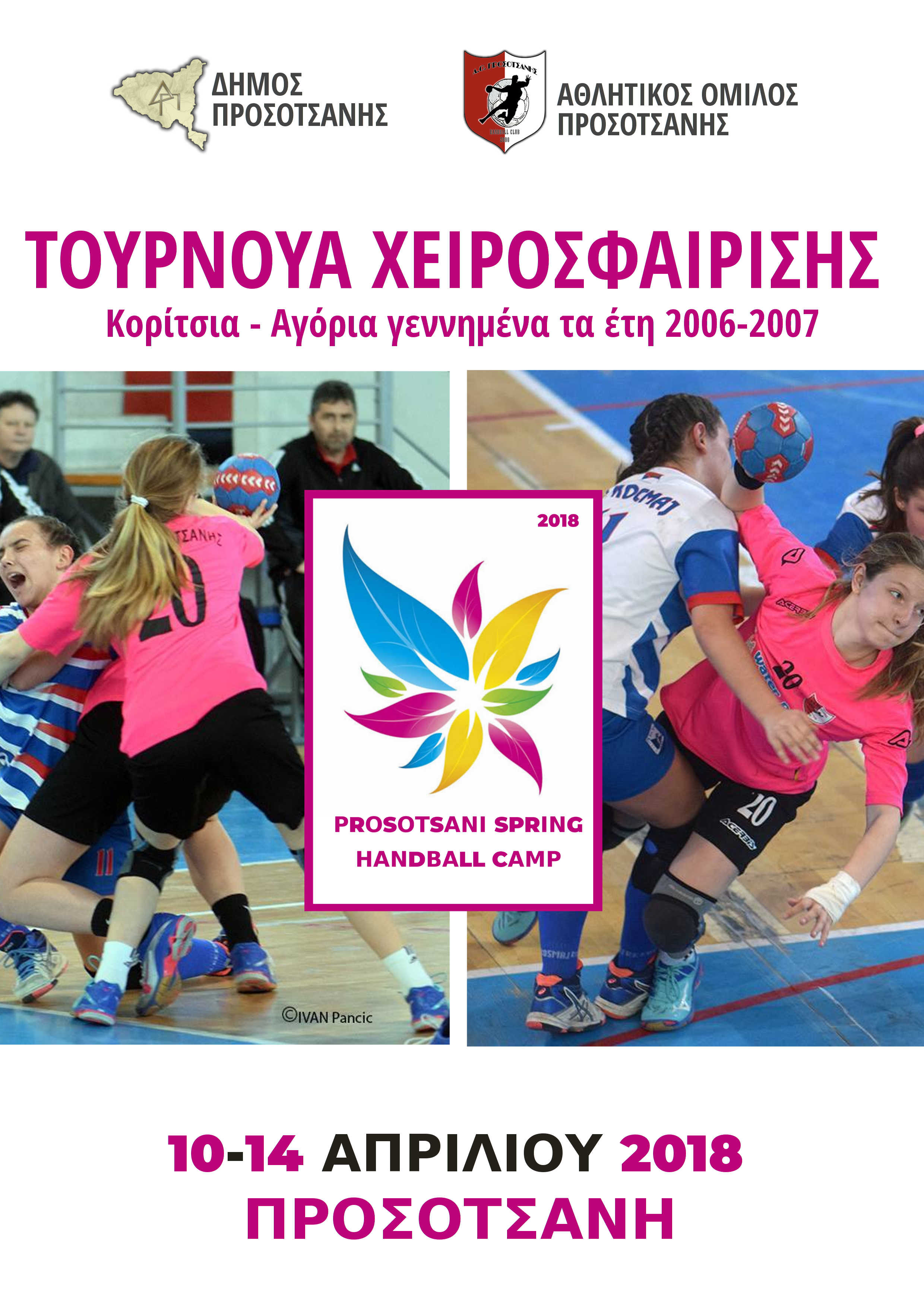 Ο Δήμος Προσοτσάνης σε συνεργασία με τον Α. Ο. Προσοτσάνης , από τις 10 έως 14 Απριλίου 2018 διοργανώνει στην Προσοτσάνη Τουρνουά Χειροσφαίρισης Αγοριών και Κοριτσιών γεννημένα τα έτη 2006-2007 με την ονομασία “Prosotsani Spring Handball Camp 2018”