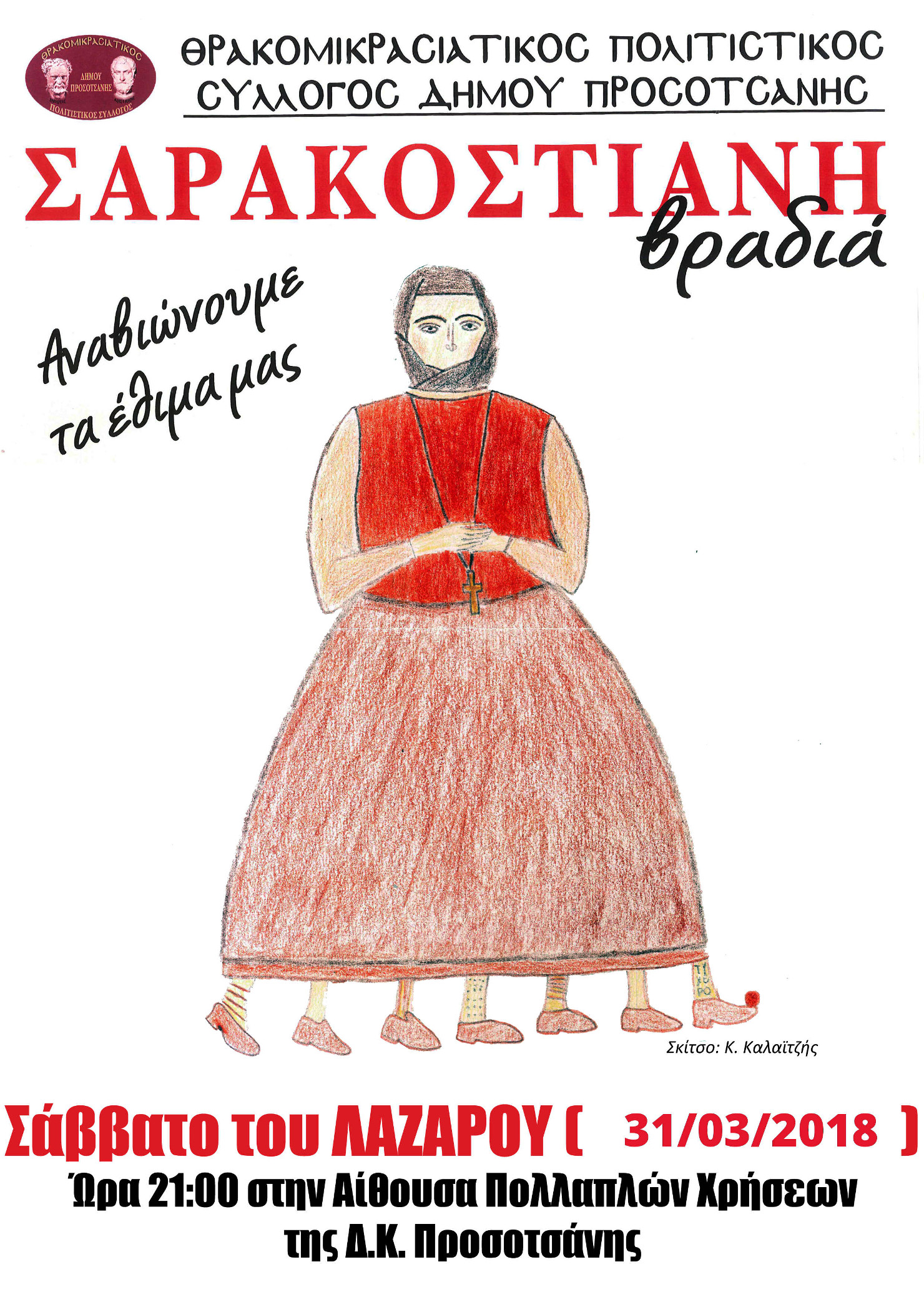 Σαρακοστιανή Βραδιά - Σάββατο 31 Μαρτίου και ώρα 21:00