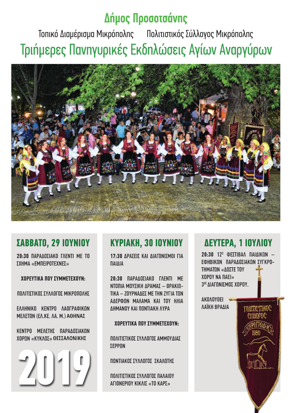 Τριήμερες Πανηγυρικές Εκδηλώσεις Αγίων Αναργύρων από 29 Ιουνίου έως 1 Ιουλίου στην Τ.Κ. Μικρόπολης