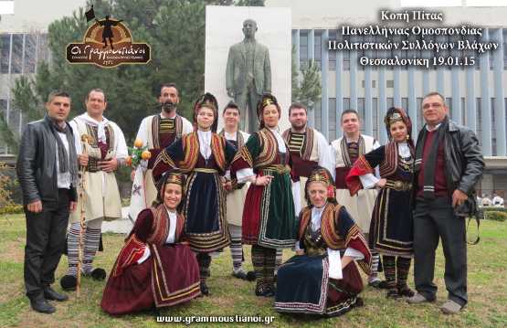 Ο Σύλλογoς Βλάχων Προσοτσάνης "Οι Γραμμουστιάνοι" πήρε μέρος στην εκδήλωση της κοπής πίτας που διοργάνωσε όπως καθε χρόνο η Πανελλήνια Ομοσπονδία Πολιτιστικών Συλλόγων Βλάχων στην αίθουσα εκδηλώσεων του Α.Π.Θ. την Κυριακή 18.01.15. Πλήθος κόσμου παρακολούθησε την πάρα πολύ όμορφη εκδήλωση στην οποία συμμετείχαν χορευτικά απ'όλη την Ελλάδα τα οποία είναι μέλη της Πανελλήνιας Ομοσπονδίας.