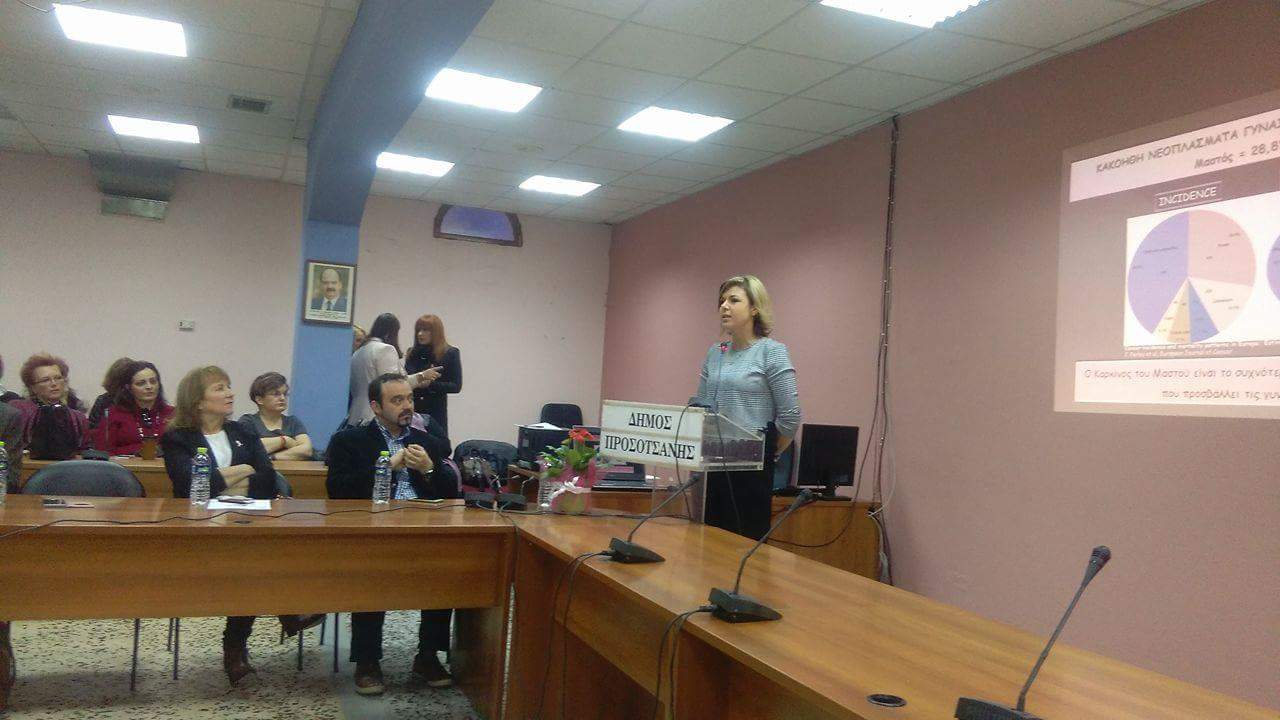 Την Κυριακή 12 Μαρτίου 2017 διοργανώθηκε με πρωτοβουλία της Δημοτικής Επιτροπής Ισότητας των Φύλων του Δήμου Προσοτσάνης σε συνεργασία με το Σύλλογο Γυναικών με Καρκίνου του Μαστού ΑΛΜΑ ΖΩΗΣ Ν. Θεσσαλονίκης, δράση η οποία αφορούσε στην Πρόληψη του Καρκίνου του Μαστού.