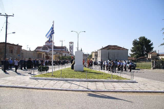 Στη συνέχεια, στο μνημείο Μακεδονομάχων του Δήμου Προσοτσάνης, έγινε κατάθεση στεφάνων από τους: βουλευτή Δράμας κ. Κων/νο Μπλούχο, πρόεδρο Περιφ. Συμβουλίου Α.Μ.Θ. κ. Χρήστο Παπαθεοδώρου, δήμαρχο Προσοτσάνης κ. Θεόδωρο Αθανασιάδη, εκπρόσωπο του προέδρου της Δ.Κ. Προσοτσάνης κα Παπάζογλου Καλλιόπη, Υποδιοικητή του Αστυνομικού Τμήματος Προσοτσάνης, Διοικητή της Πυρ/κής Υπηρεσίας Δράμας, Διευθυντή του 1ου Δημοτικού Σχολείου Προσοτσάνης εκ μέρους όλων των σχολείων της Προσοτσάνης και από τον πρόεδρο του Μουσικοχορευτικού Συλλόγου Προσοτσάνης «ο Μέγας Αλέξανδρος» ως εκπρόσωπο όλων των παρεβρισκόμενων Πολιτιστικών Συλλόγων. Στην εκδήλωση παραβρέθηκαν οι σημαίες των σχολείων (πρωτοβάθμιας & δευτεροβάθμιας εκπαίδευσης) της Προσοτσάνης καθώς και τα λάβαρά πολλών Πολιτιστικών Συλλόγων του Δήμου Προσοτσάνης αλλά και ευρύτερα.